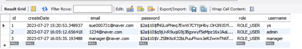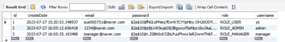 먼저, 기존에 데이터베이스에 있는 회원들의 권한을 바꿔보자