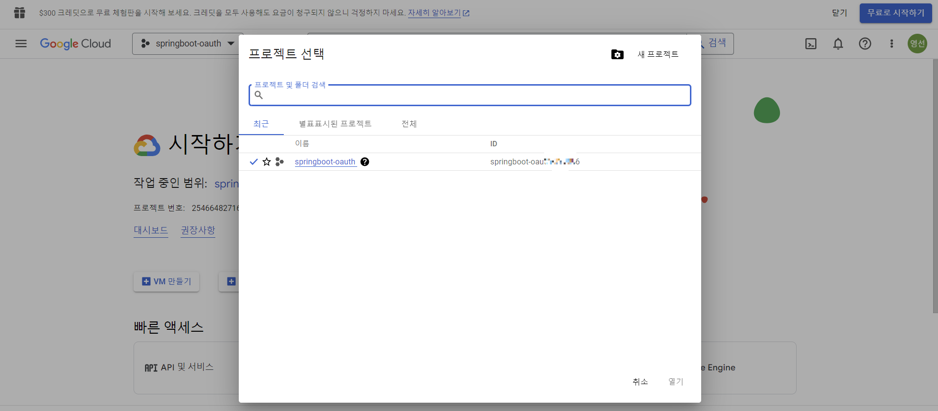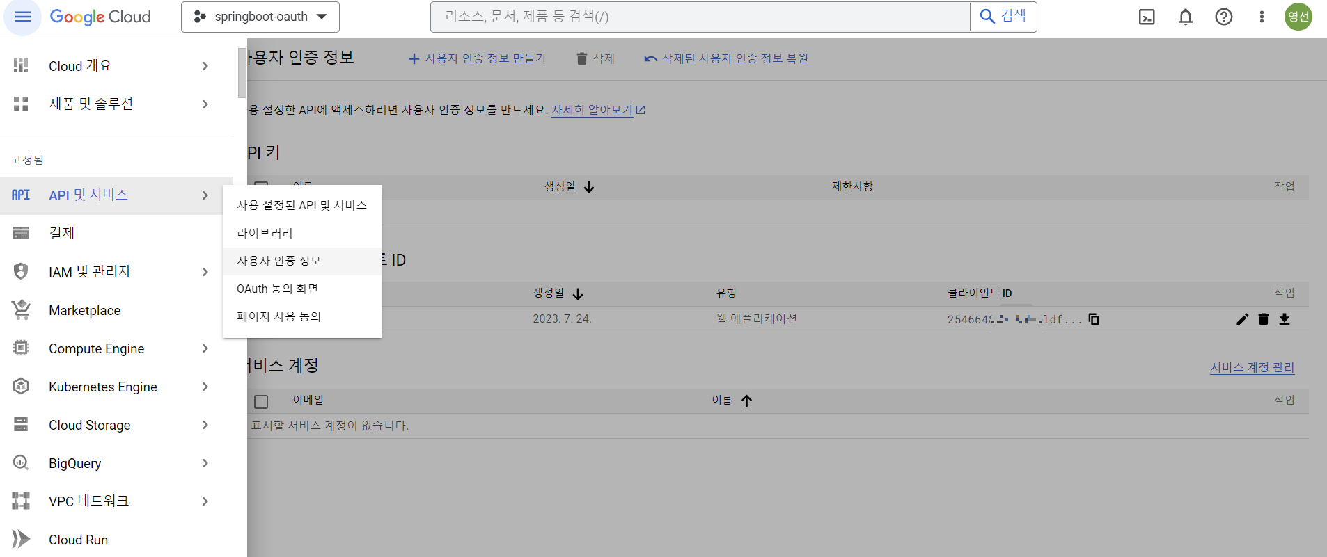 승인된 리디렉션 URI : http://localhost:8080/login/oauth2/code/google 로 설정