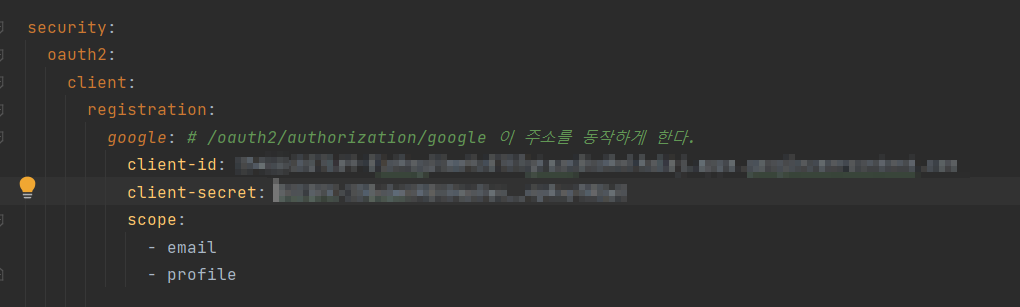 6. application.yml 에 구글 client ID와 비밀번호 입력 -> gitIgnore 에 파일 등록할 것!!