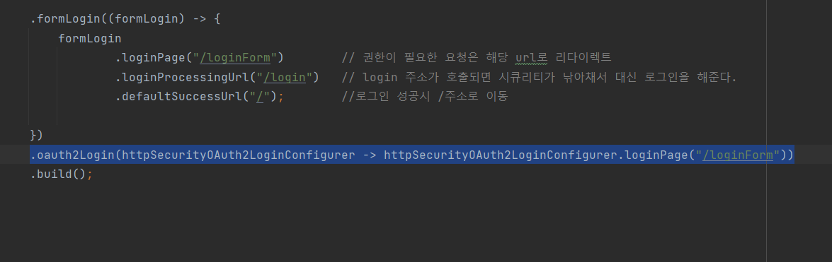 .oauth2Login(httpSecurityOAuth2LoginConfigurer -> httpSecurityOAuth2LoginConfigurer.loginPage("/loginForm"))