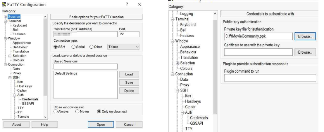 4. putty 앱을 열어 로컬 ipv4와 .ppk파일을 넣어 open