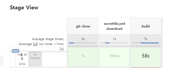 git clone을 한 후, credentials에 등록한 secretfile.yml의 id인 secretfile-id-1을 다운로드 하고, 순서대로 ./gradlew clean bootJar 해주었다.