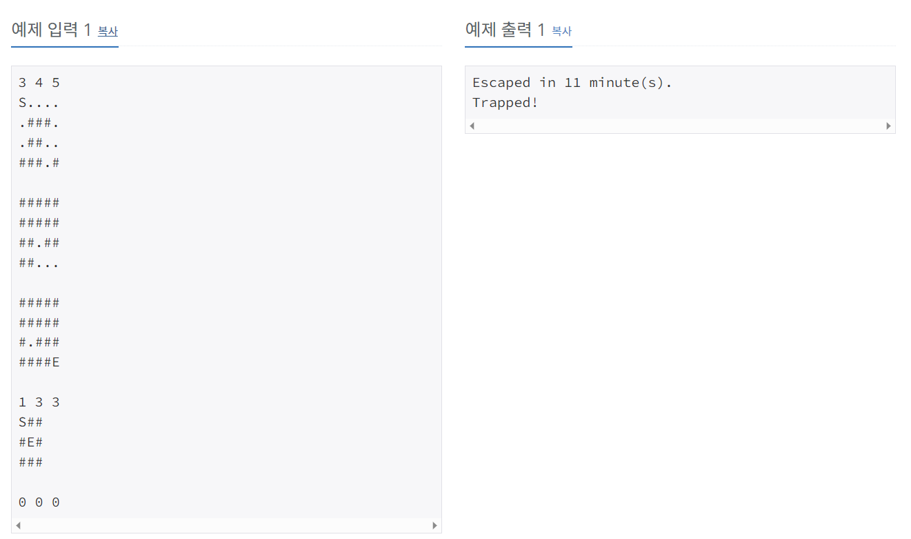 print("Escaped in %d minute(s)." %d[x][y][z])
