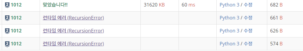 문제를 풀때 입출력은 동일했으나, 계속 런타임 에러가 떴는데 sys.setrecursionlimit(10**6) 를 붙여 해결했다.