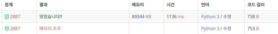 입출력은 동일하나, 메모리 초과가 뜬다. N이 100,000인데 128MB이므로 info의 메모리를 줄여야한다.